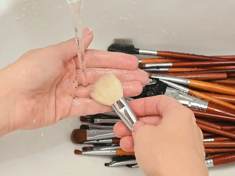 Faodaidh na riochdairean glanaidh a bha ri fhaighinn remover ola a tha sàbhailte agus gun chron air a 'chraiceann. Tha riochdairean glanaidh sònraichte air a 'mhargaidh airson puffaichean pùdar agus innealan makeup. Ma lorgas tu ro thrioblaideach, faodaidh tu cumaire socair a chleachdadh cuideachd. A bharrachd air an sin, tha cuid de shampos pempos agus siabann glanaidh nàdurrach rim faighinn cuideachd, ach tha cleachdadh siabann glanaidh a 'cur beagan de dh' ola ollaidh no ola coconut gus faighdearan a 'bhrìoban ath-dhealbhadh.